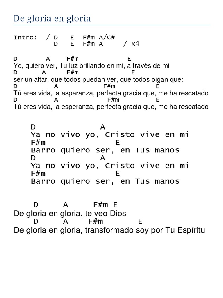 Related Terms : De Gloria En Gloria Acordes