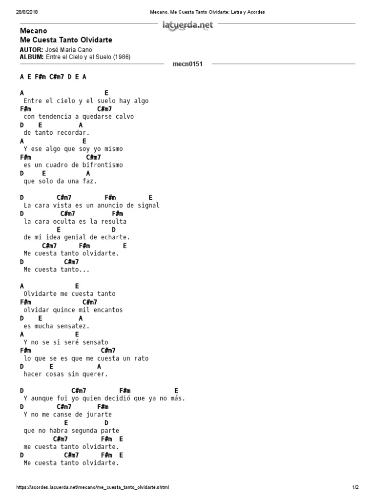 Acordes Y Emociones Mecano Me Cuesta Tanto Olvidarte