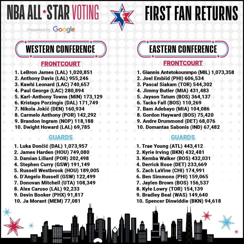 2020 Nba All Star Voting Luka Doncic Giannis Lebron James Lead 1st Results Bleacher Report Latest News Videos And Highlights