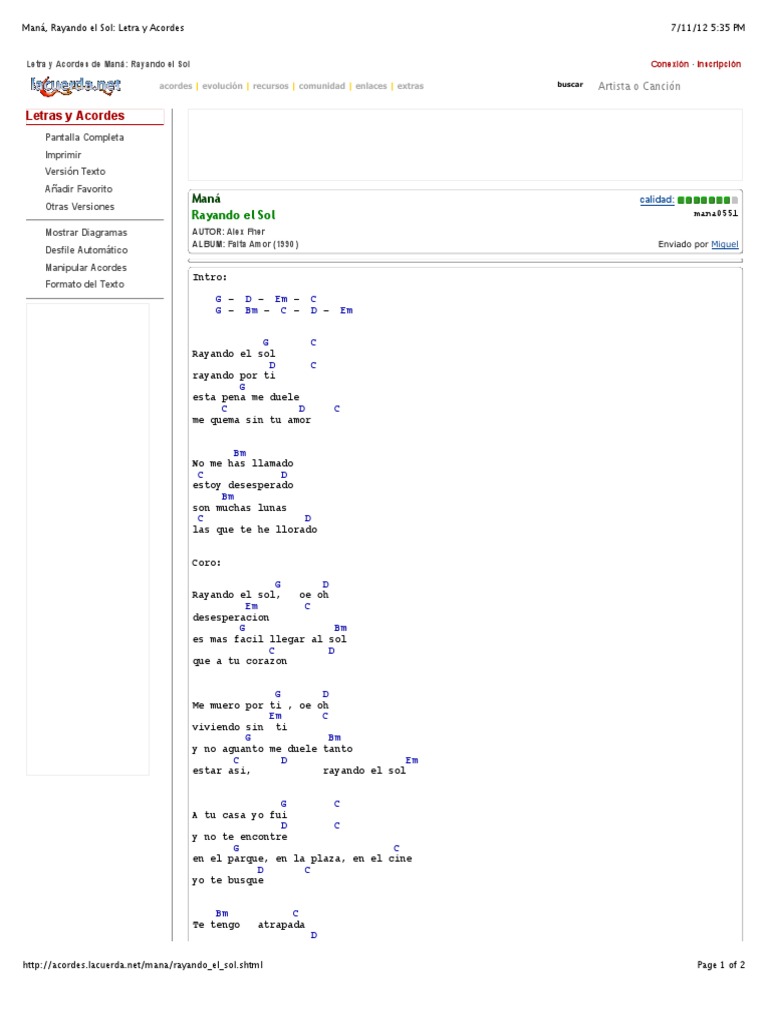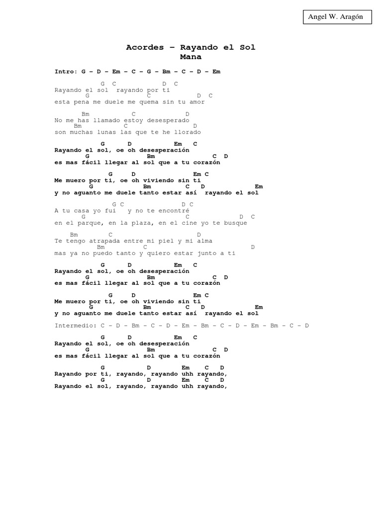 Mana Tablaturas Y Acordes Para Guitarra Acustica Facebook