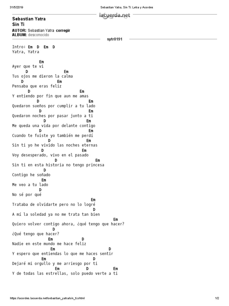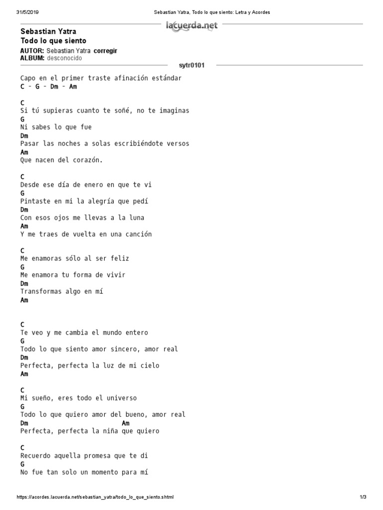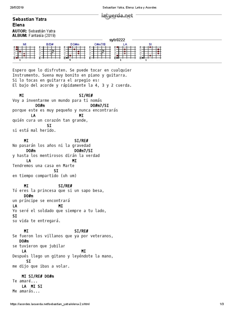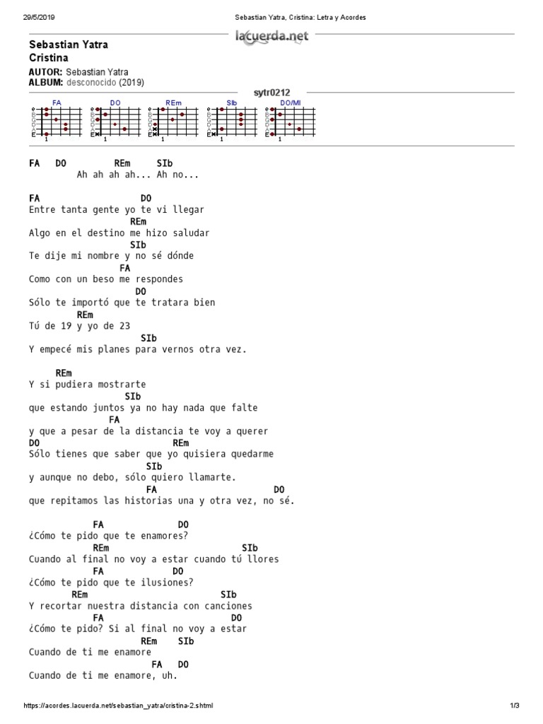 Sebastian Yatra Letras Acordes y Tabs para Guitarra Bajo y Ukulele. Transcripcin x javi29 para wwwacordesdcancio. Letra y msica de sus canciones con notas para guitarra.