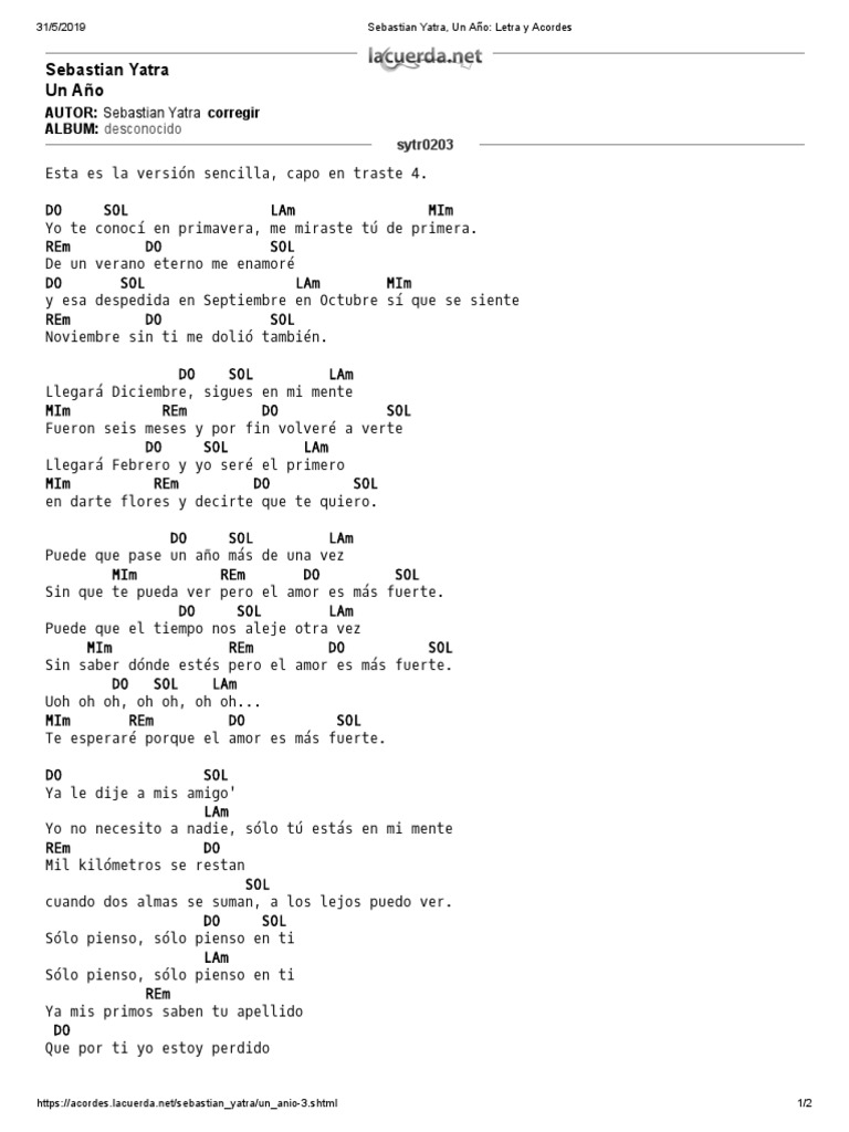 Sebastian Yatra Un Ano Letra Y Acordes Musica Grabada Musica Pop