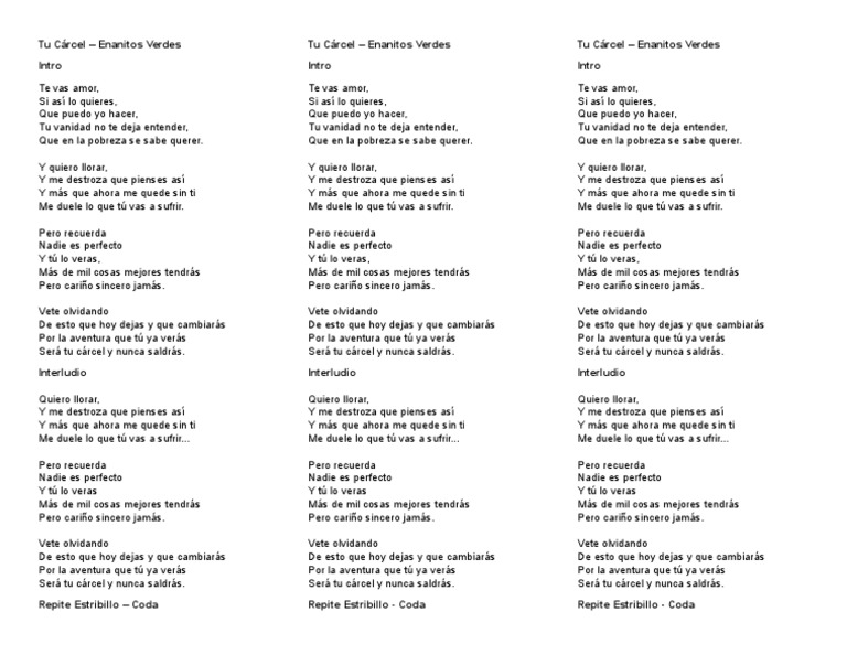 Enanitos Verdes Tu Carcel Letra Y Acordes Pdf