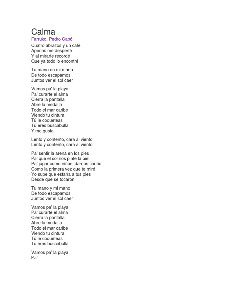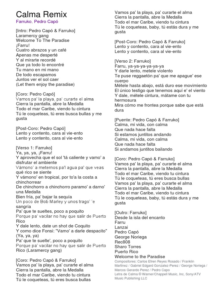 Pedro Capo Farruko Calma Remix Letra Lyric Reggaetonsinlimite